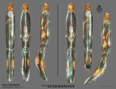 The Thirteenth Doctor's organic, steel and crystalline sonic screwdriver was designed by Series Eleven concept artist Darren Fereday and production designer Arwel Wyn Jones and would mimic the look of The Doctor's newly re-designed TARDIS interior set. Nick Robatto of Rubbertoe Props would once again be called upon to build the physical props just as he had previously done for the Tenth, Eleventh, and Twelfth Doctor's sonic screwdrivers.